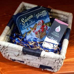 UNA SCATOLA IN LATTA CON ALL’INTERNO UN SAPONE PROFUMATO ALL’ARANCIA E CANNELLA CON OLIO D’OLIVA.