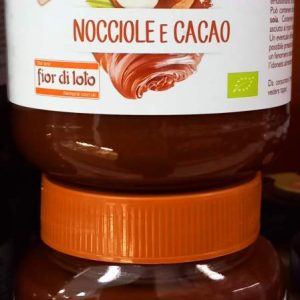 CREMA SPALMABILE BIOLOGICA CON PASTA DI NOCCIOLE E CACAO.